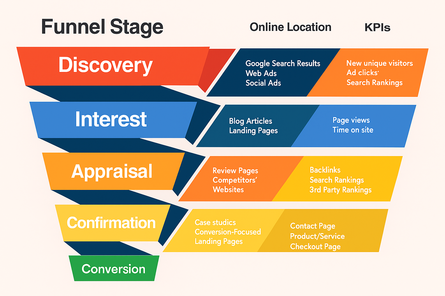 Understanding each stage of the conversion funnel is key to optimizing the customer journey: