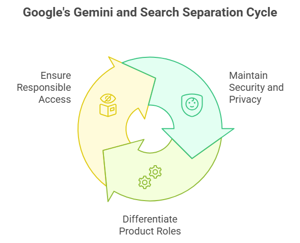 Google maintains a clear separation between Gemini and Search to ensure proper control over privacy, data handling, and system permissions. This structure protects user information and prevents unauthorized retrieval behaviors while supporting safe interaction with web content.