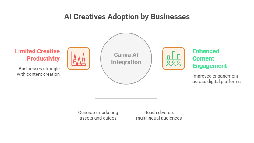 In the US, startups and SMBs use Canva AI to generate investor decks, marketing assets, and training guides without spending thousands on agencies.
