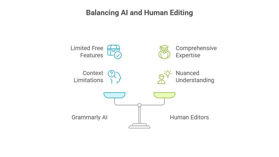 Although Grammarly is a powerful tool, it cannot replace the expertise of a human editor. It may miss subtle nuances in your writing, especially in complex or highly creative pieces.