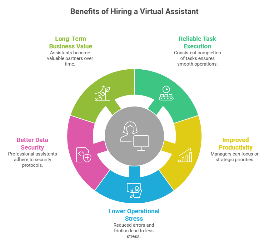 Effective delegation reallocates managerial attention toward strategic and revenue-generating priorities. Structured assistance accelerates task throughput while preserving accuracy and process continuity.