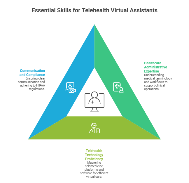 A successful telehealth virtual assistant must combine healthcare knowledge with strong technical and communication skills. These competencies allow them to operate effectively in virtual care environments while maintaining compliance. Understanding how Virtual Assistants help in telehealth support also requires recognizing the expertise behind their role.