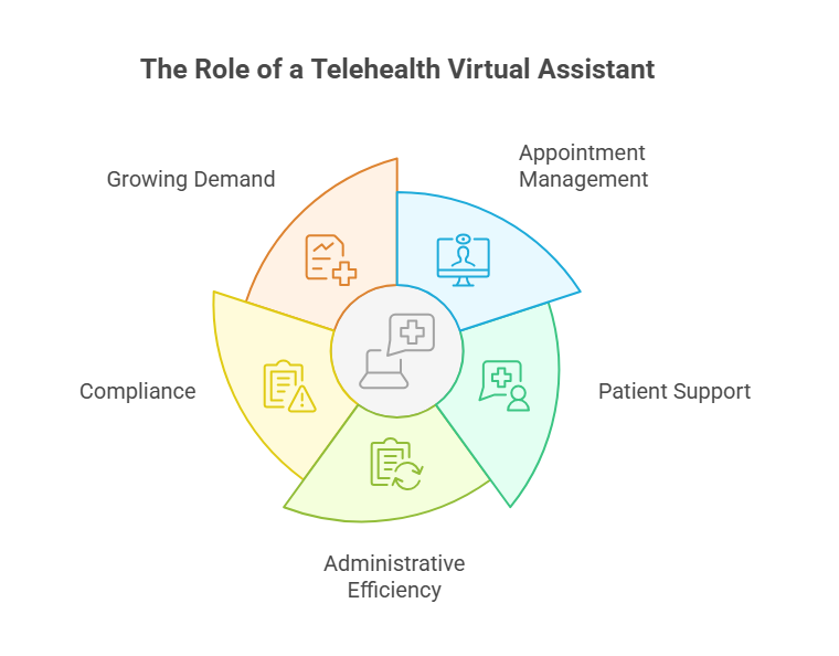 A Telehealth Virtual Assistant (Telehealth VA) is a trained remote assistant who supports healthcare providers in managing non-clinical tasks related to telemedicine services. They work behind the scenes to ensure virtual appointments run smoothly, patients are supported, and administrative processes remain compliant and efficient.