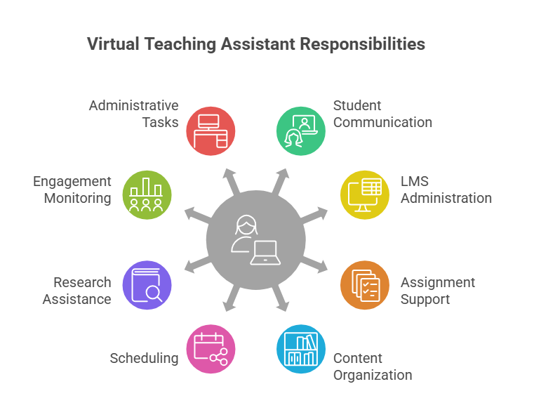 A virtual teaching assistant is a remote academic support professional who enhances digital education environments through structured operational, administrative, and learner-support functions. These specialists assist with communication management, LMS administration, grading workflows, research activities, content organization, and scheduling coordination. Their involvement strengthens instructional efficiency, improves learner experience, and enables educators to focus on high-impact teaching responsibilities.