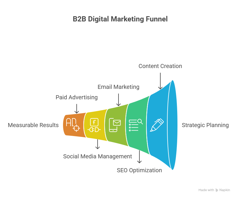 Digital marketing ensures your company is visible across search engines, social platforms, and industry directories. With a consistent presence, your brand becomes easily discoverable by other businesses seeking solutions. Visibility translates to trust, awareness, and growth opportunities.