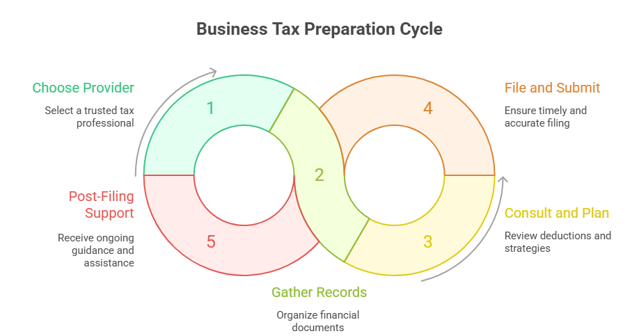 To get the most from Business Tax Preparation Services, companies must follow a coordinated process. This ensures efficiency and maximizes tax savings. A structured approach also reduces the chances of missing deadlines or overlooking important documentation. By collaborating closely with tax professionals, businesses can unlock long-term advantages beyond just annual compliance.