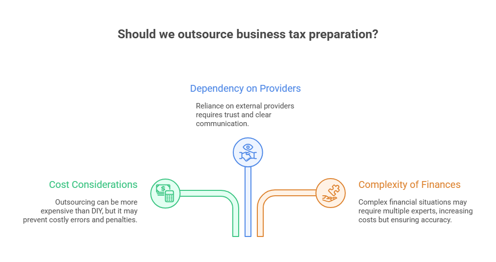 While highly beneficial, there are limitations that businesses should weigh before outsourcing. Costs may be higher than DIY options, especially for smaller firms with simple tax structures. Additionally, businesses must rely heavily on the accuracy and timeliness of the service provider. Establishing trust and choosing the right partner are therefore essential to avoid potential risks.