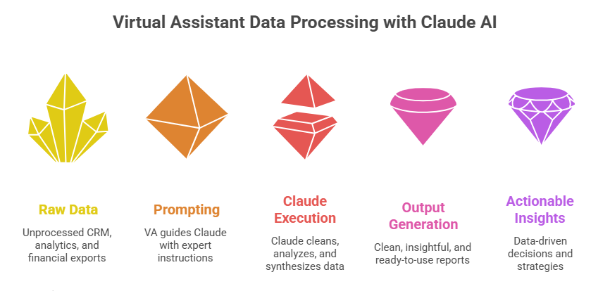 Virtual assistants leverage Claude AI to handle repetitive and complex data tasks with precision and speed. By combining expert prompting with Claude’s reasoning and code execution, VAs deliver clean, insightful, and ready-to-use outputs that directly support business decisions.
