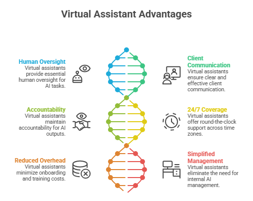 | Overhead | Recruiting, training, and tools | Minimal; VA handles prompt engineering & review |