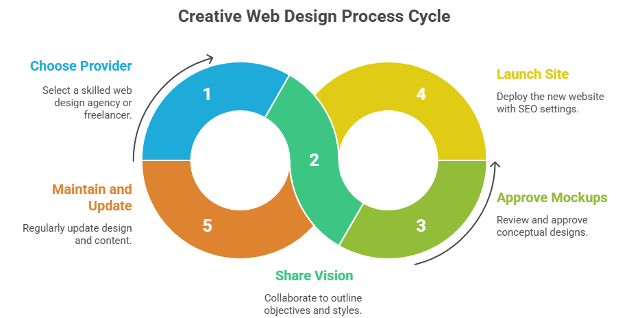 Working with a creative web design provider is a structured process that ensures your vision becomes a digital reality. By following a clear set of steps, businesses can maximize collaboration and outcomes. Below is the typical process of engaging Creative Web Design Services: