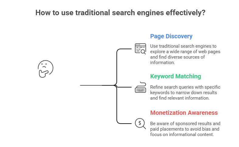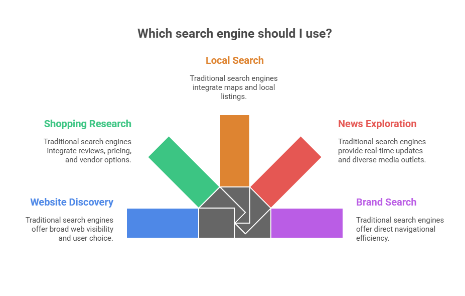 Traditional search engines are unmatched when users want to explore a wide range of websites or discover new platforms. They provide visibility into the broader web ecosystem and allow users to choose sources based on personal preferences.