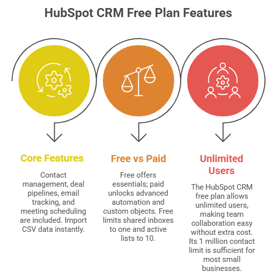 - Choosing between HubSpot CRM free and paid plans depends on business scale, with the free version covering around 80% of daily needs for most users.