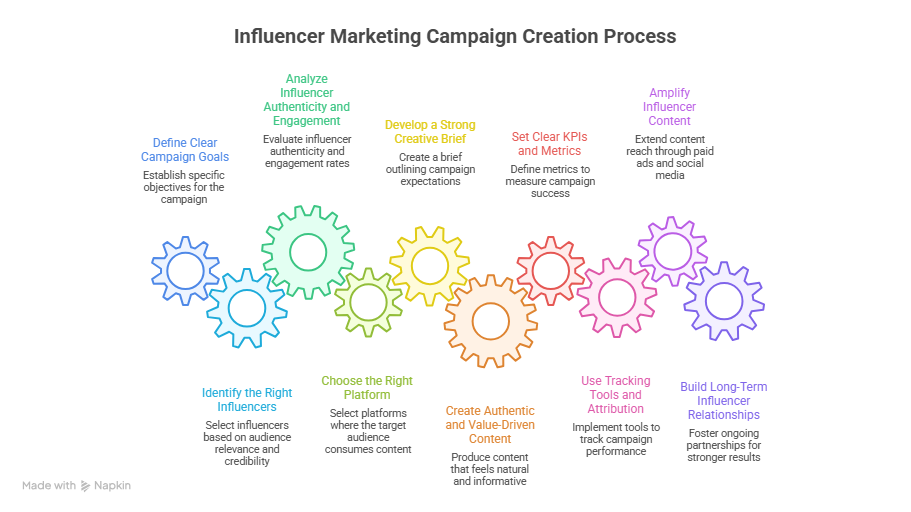 Creating a successful influencer marketing campaign requires a clear framework that balances strategic planning with creative flexibility. Each step builds on the previous one, ensuring that influencer selection, content creation, and performance measurement remain aligned with business objectives. A structured process also makes it easier for teams or virtual assistants to manage workflows, documentation, and communication efficiently. The following ten steps outline how to build, execute, and optimize an influencer marketing campaign that delivers consistent results.