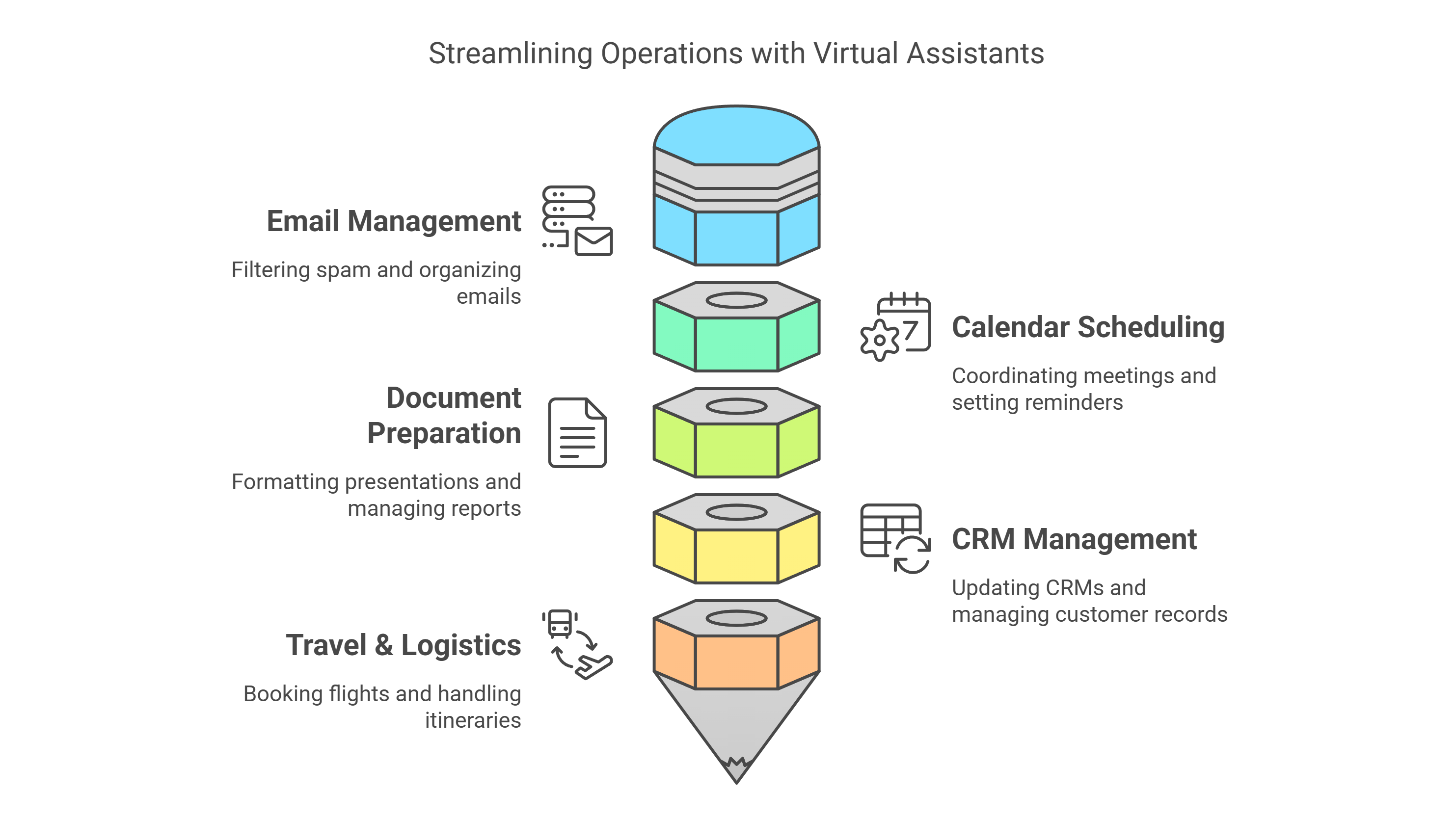 Virtual assistants coordinate meetings, set reminders, and manage time blocks to optimize productivity. They eliminate scheduling conflicts and help professionals maintain balance in their workday.