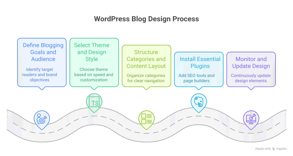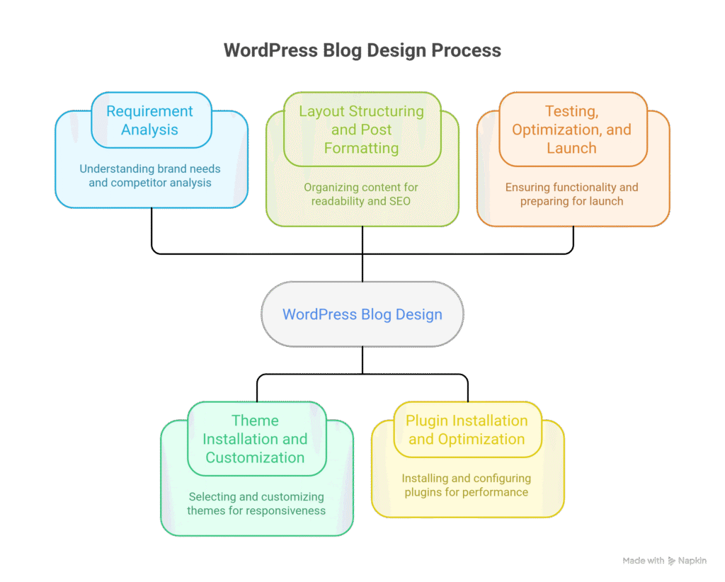 Below is a recommended step-by-step framework for rolling out a WordPress blog design project.