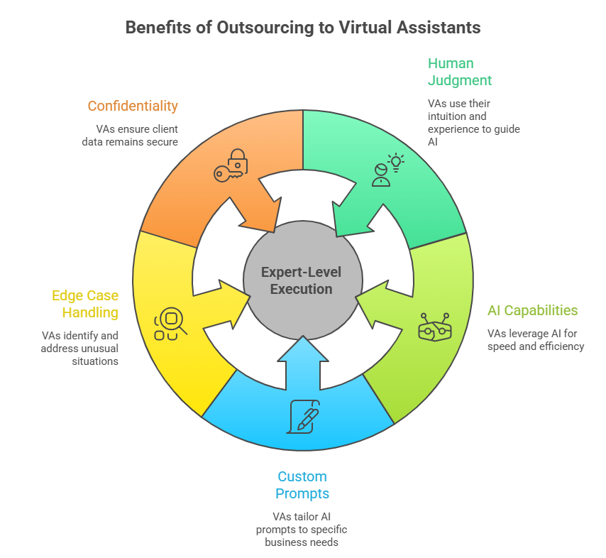 VAs combine human judgment with the speed and capabilities of the Claude AI app. They customise prompts specifically for each business, catch edge cases the AI might miss, and strictly maintain client confidentiality. Companies receive expert-level execution without the overhead of training staff or managing additional software licenses.