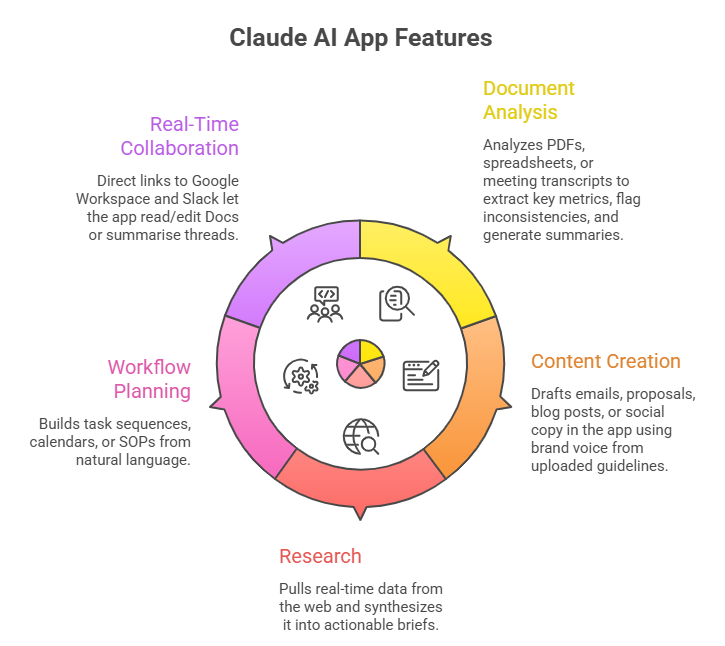 The Claude AI app offers targeted features that directly support virtual assistant workflows for small businesses and agencies. These capabilities enable fast, accurate execution of daily operational tasks from any device.