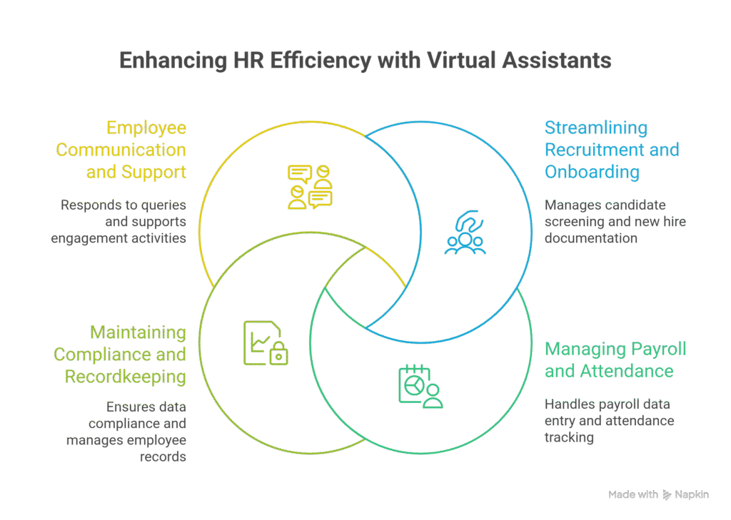 Virtual assistants play a vital role in enhancing HR outsourcing efficiency. They serve as the operational backbone for executing routine HR tasks while maintaining precision and consistency.