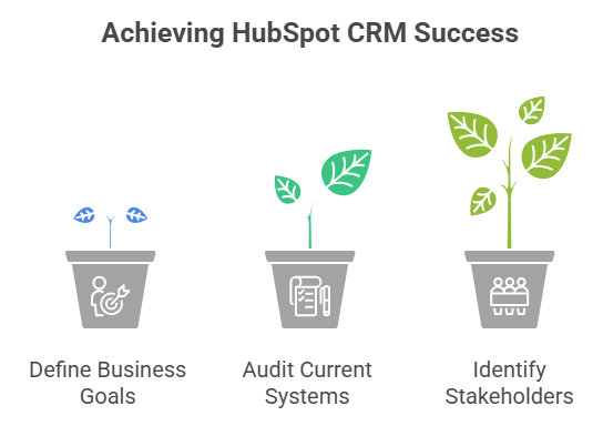 Defining business goals and KPIs ensures your HubSpot CRM is aligned with measurable outcomes, not just activity tracking. Clear objectives—such as lead conversion rates, sales cycle length, or customer retention—help guide system configuration and automation. Well-defined KPIs provide visibility into performance and enable data-driven decision-making. Without them, it’s difficult to measure success or optimize your CRM strategy effectively.