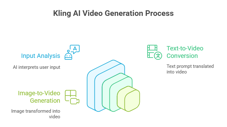 Kling AI uses deep learning algorithms to analyze input (text or images) and generate video content by predicting realistic movements, lighting, and textures.