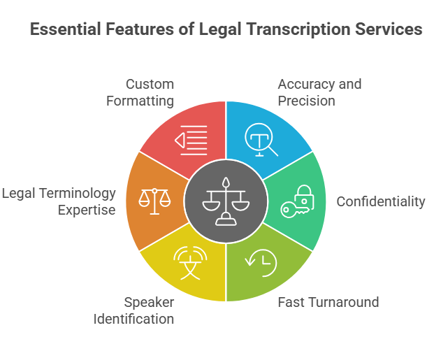 A professional Legal Transcription Service comes with a range of specialized features that ensure the quality and reliability of every document produced. These features are designed to meet the demands of law firms, judicial offices, and corporate legal departments, emphasising precision, confidentiality, and efficiency.