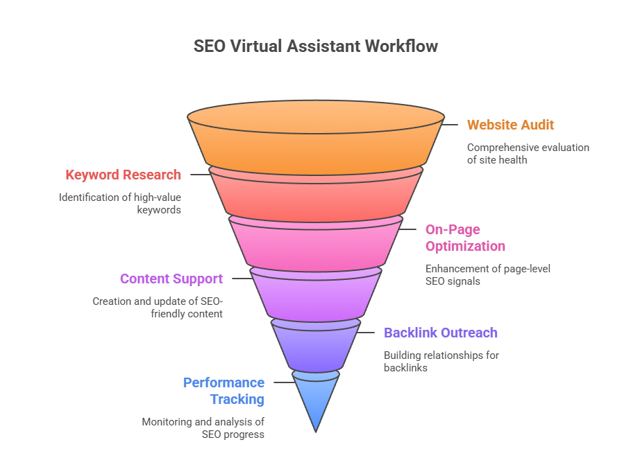 An SEO Virtual Assistant follows a structured workflow designed to understand your business, assess your SEO challenges, and implement improvements that support long-term visibility. Their work is a blend of analysis, optimization, and continuous monitoring. Below are the core steps involved in how an SEO VA operates.