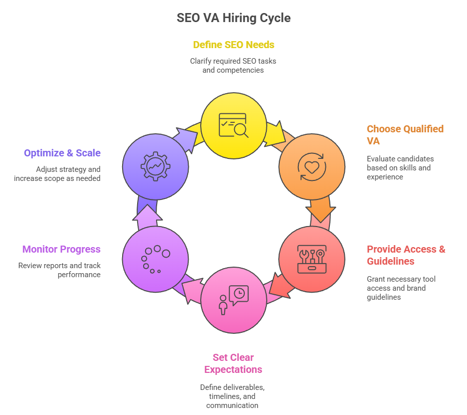 Selecting the right SEO VA requires planning, screening, and clear communication. Following a structured hiring process ensures you choose someone who understands your goals and delivers reliable results. Below are the key steps involved.