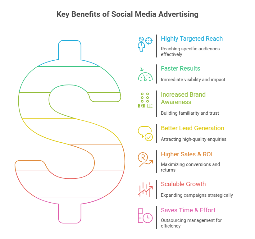 Paid social advertising offers measurable advantages for UK businesses seeking consistent growth. When managed professionally, campaigns deliver faster results, improved targeting, and stronger financial returns. The following benefits highlight why many organisations invest in Social Media Advertising Services.