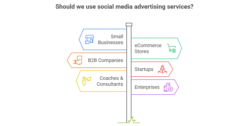 Large organisations use Social Media Advertising Services to scale globally or nationally. Multi-platform campaigns support brand awareness, lead generation, and product promotion, particularly as over 70% of large enterprises run advertising campaigns across multiple social media platforms to maximise reach and efficiency, reinforcing the importance of coordinated paid social strategies. Advanced reporting supports enterprise-level decision-making.