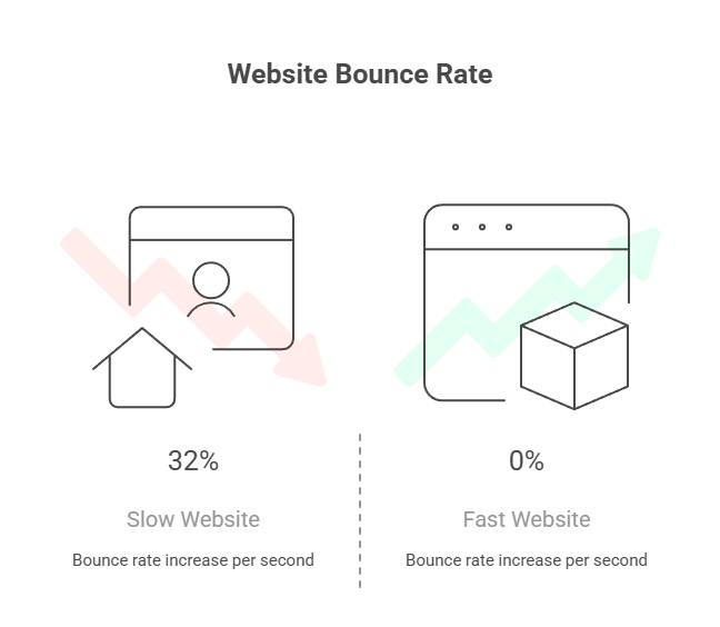 Google’s research shows that every extra second of load time increases the probability of a visitor leaving by 32%.