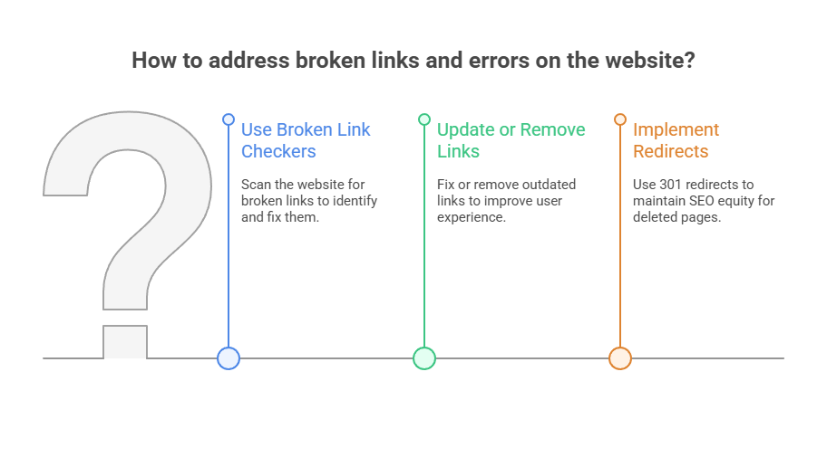 - Update or Remove Links: Fix or remove outdated or broken internal and external links.