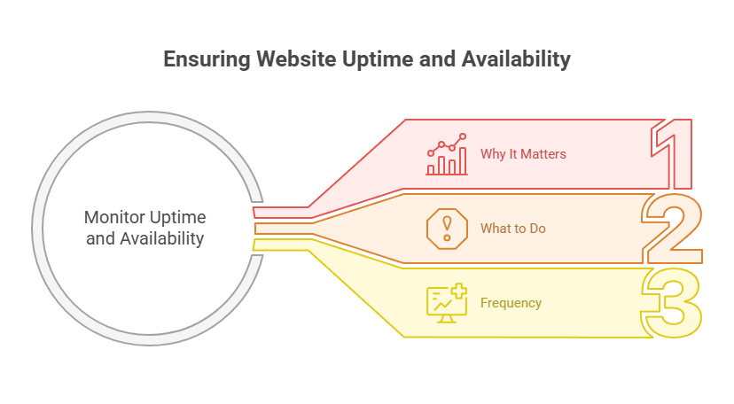 - Uptime Monitoring: Use tools like UptimeRobot or Pingdom to monitor website uptime and availability.