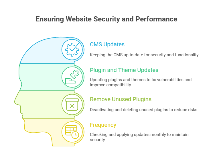 Outdated software, plugins, and themes are some of the most significant security vulnerabilities on your website. As cyber threats become more sophisticated, regular updates ensure that your site has the latest security patches, bug fixes, and performance improvements. This is essential for both the integrity of your site and for keeping it compliant with search engine standards.