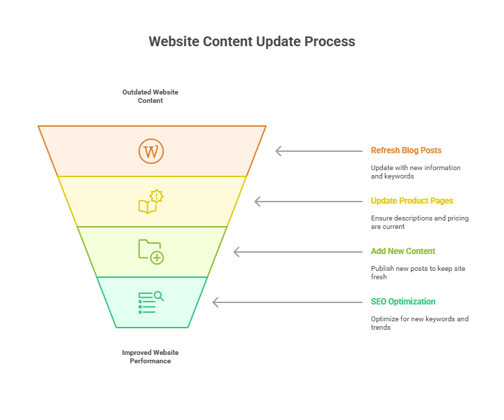 Content that is outdated can negatively impact both your users and SEO. Fresh, relevant content improves search engine rankings and attracts more visitors. Keeping your content updated also shows visitors that your website is active and current.