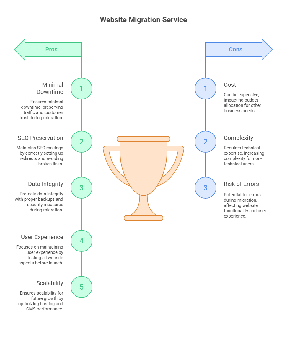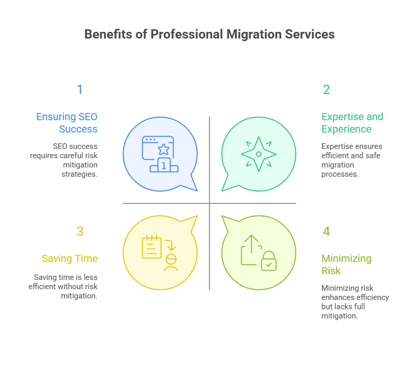 Website migrations come with several risks, such as losing data, breaking links, or suffering from downtime. Professional services are well-equipped to mitigate these risks by having backup and security protocols in place.
