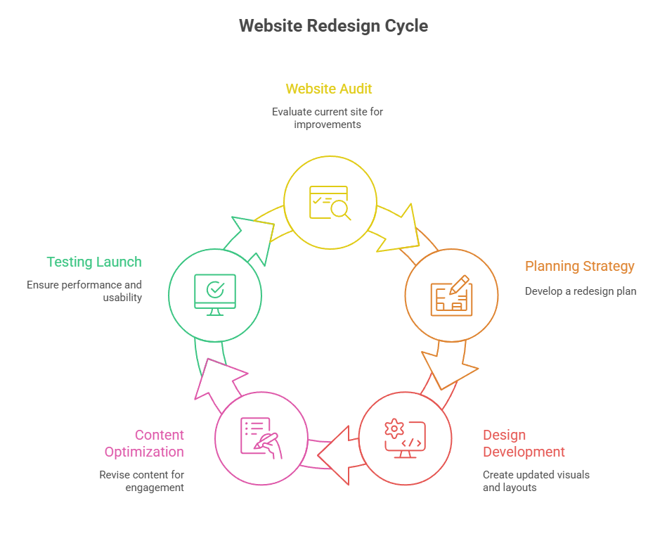 Unlike minor website tweaks, redesigning involves a comprehensive review of the website structure, content, visuals, and functionality. It’s an ideal solution for businesses looking to stay competitive, attract new audiences, and convert visitors into loyal customers.