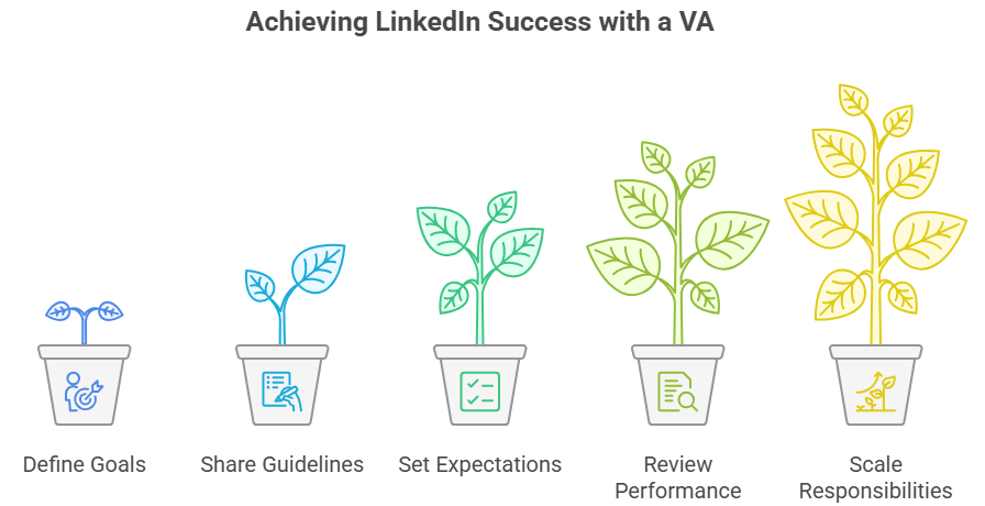 Working effectively with a LinkedIn VA requires clarity, structure, and collaborative alignment between expectations, goals, and communication style. The process begins with defining strategic objectives, followed by providing guidelines, workflows, and review points that support coordinated execution. When managed proactively, the partnership creates efficiency, consistency, and professional growth across LinkedIn activities.