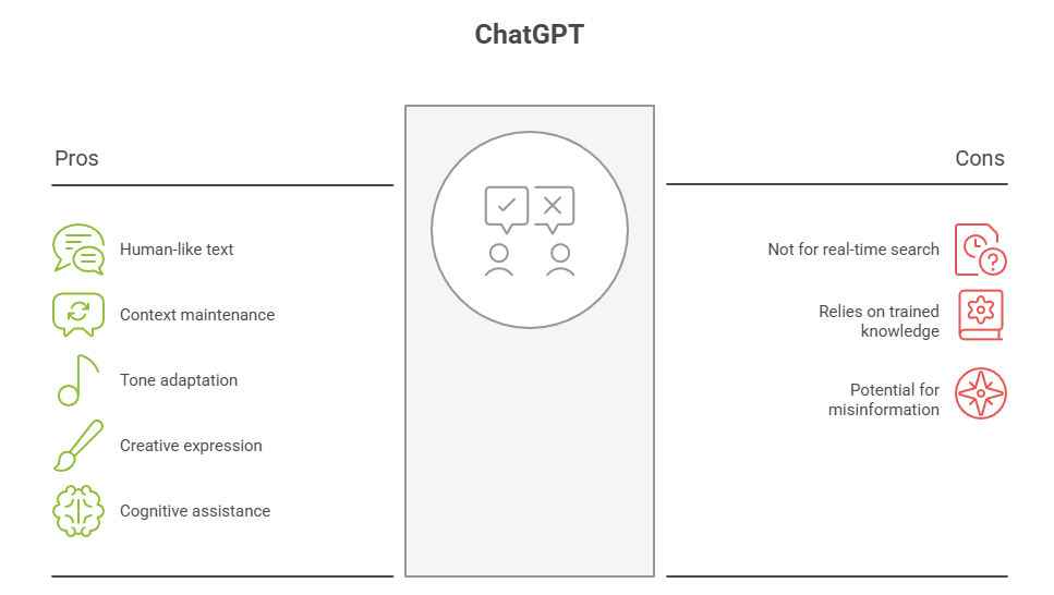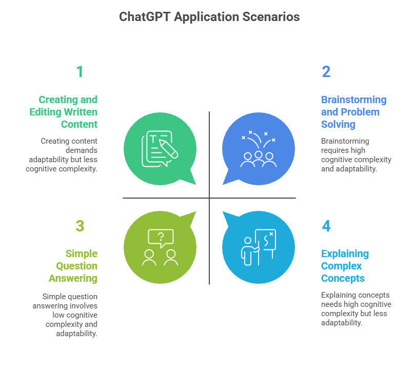 ChatGPT is most effective in scenarios where language quality, reasoning, and adaptability are more important than direct source attribution. It supports a wide range of cognitive and creative workflows that extend beyond simple question answering. Its flexibility makes it a general-purpose assistant for both professional and personal use.