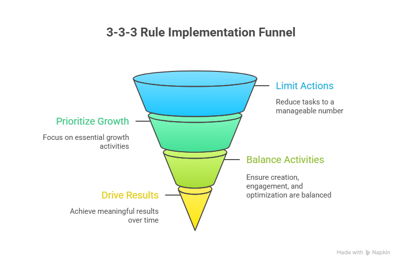 Many online marketing strategies fail not because of poor ideas, but because of inconsistent execution and lack of focus. Businesses often start strong, overcommit to complex strategies, and eventually burn out or abandon their efforts altogether. The 3-3-3 rule addresses this challenge by introducing a repeatable system that reduces decision fatigue and creates momentum through routine action.