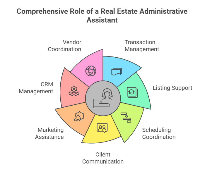 A Real Estate Administrative Assistant is a critical operational professional who supports agents, brokers, and real estate businesses by managing documentation, listings, scheduling, marketing coordination, CRM updates, and transaction workflows. Whether working in the office or as a Virtual Real Estate Administrative Assistant, their role ensures accuracy, compliance, and efficiency across daily operations.