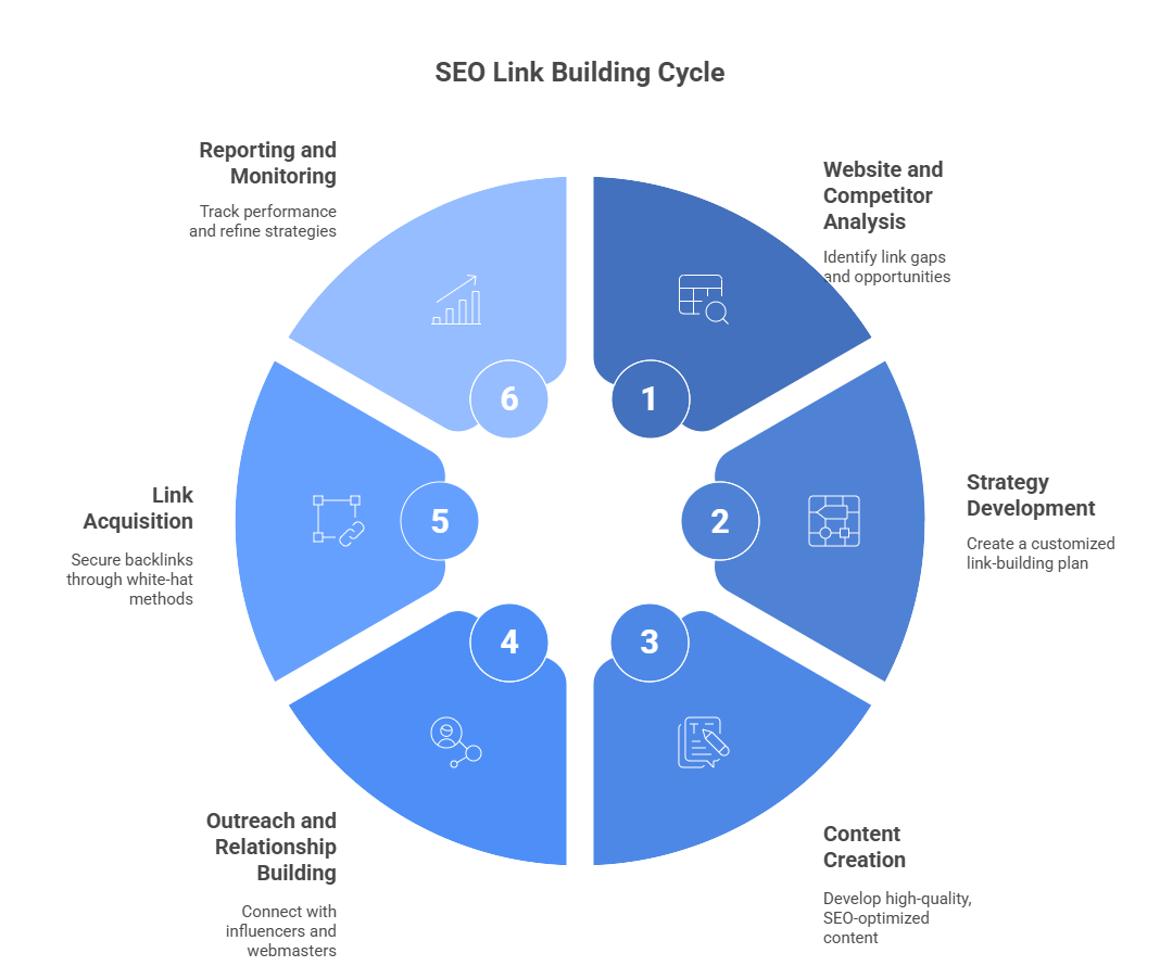 The process begins with a thorough audit of your website’s backlink profile, content structure, and SEO health. Experts identify existing link gaps and evaluate competitors’ strategies to uncover potential opportunities. This helps determine which types of backlinks will deliver the strongest results. By understanding both strengths and weaknesses, the foundation for a data-driven link-building plan is established.