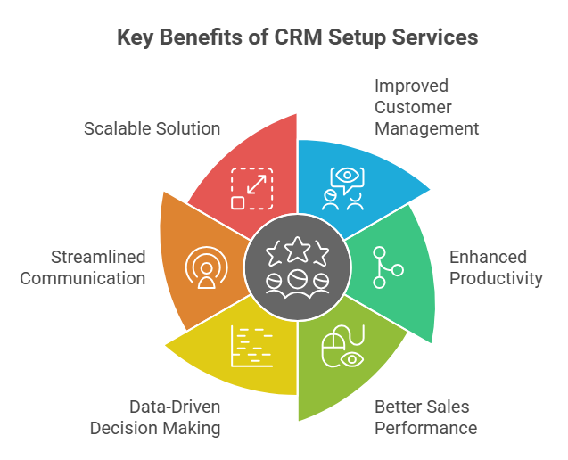 Investing in CRM setup services brings tangible advantages that go beyond system installation. With professional configuration, companies see measurable improvements in customer relationships, team efficiency, and revenue. Below are the key benefits explained.