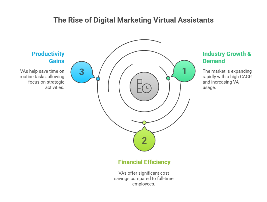 The Digital Marketing Virtual Assistant is no longer a hidden gem—it’s a mainstream solution. In 2025, as economic uncertainties and digital competition continue to rise, businesses in the US and UK must embrace remote, specialized, cost-effective talent to maintain marketing efficiency.