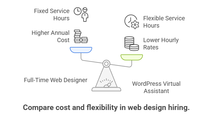 One of the biggest advantages of hiring a WordPress design VA is cost-efficiency. While hiring a full-time web designer in the UK or US may cost £35,000–£50,000 ($45,000–$65,000) annually, a virtual assistant offers the same specialized services at a fraction of the price.