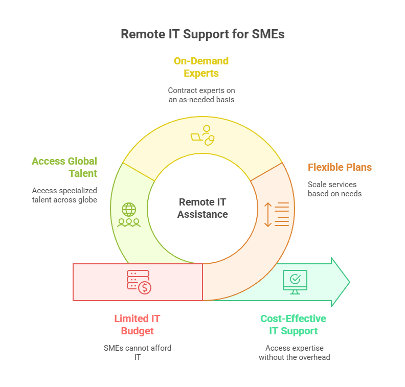 Small and mid-sized enterprises (SMEs) across the US and UK often struggle to afford full-time, in-house IT support. Remote technical assistance offers them access to enterprise-level expertise without the overhead. Through flexible plans, SMEs can scale services up or down based on seasonal needs or growth cycles.