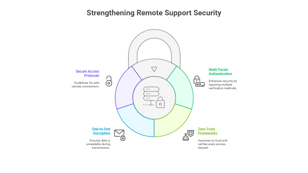 As reliance on remote technical support grows, so does the need for robust cybersecurity. Remote environments are inherently more vulnerable to threats, especially when handling sensitive data or proprietary systems. To mitigate risks, businesses are adopting security practices such as multi-factor authentication (MFA), zero-trust frameworks, and end-to-end encryption.