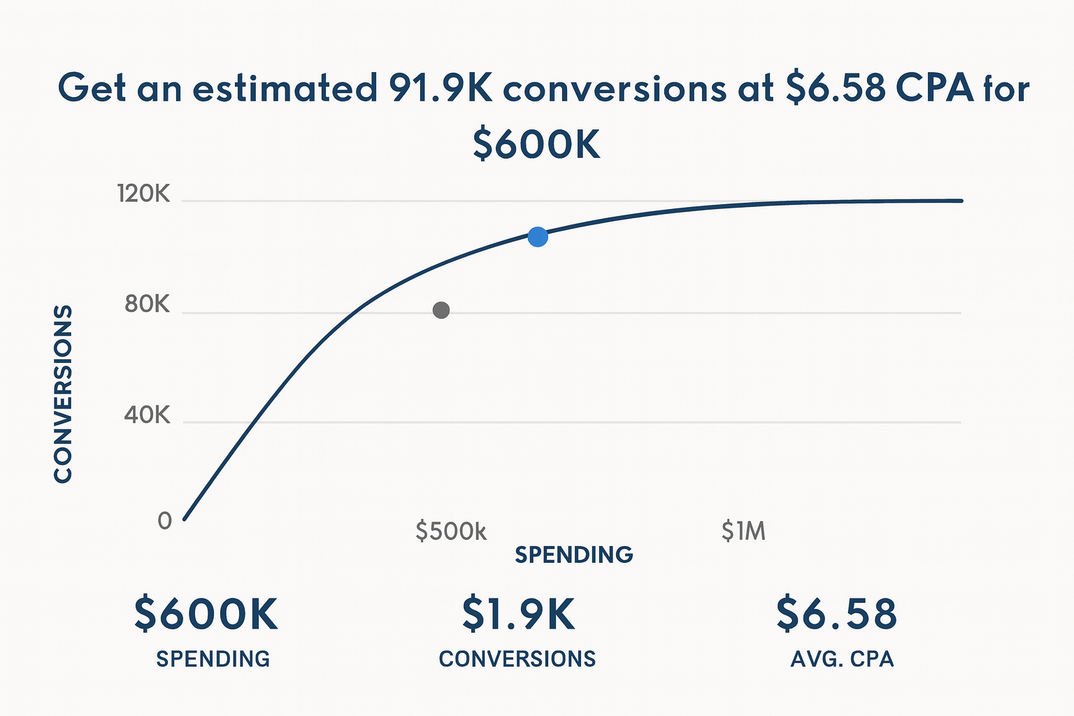 Predicts how changes in ad spend will affect key metrics like clicks, conversions, and revenue.